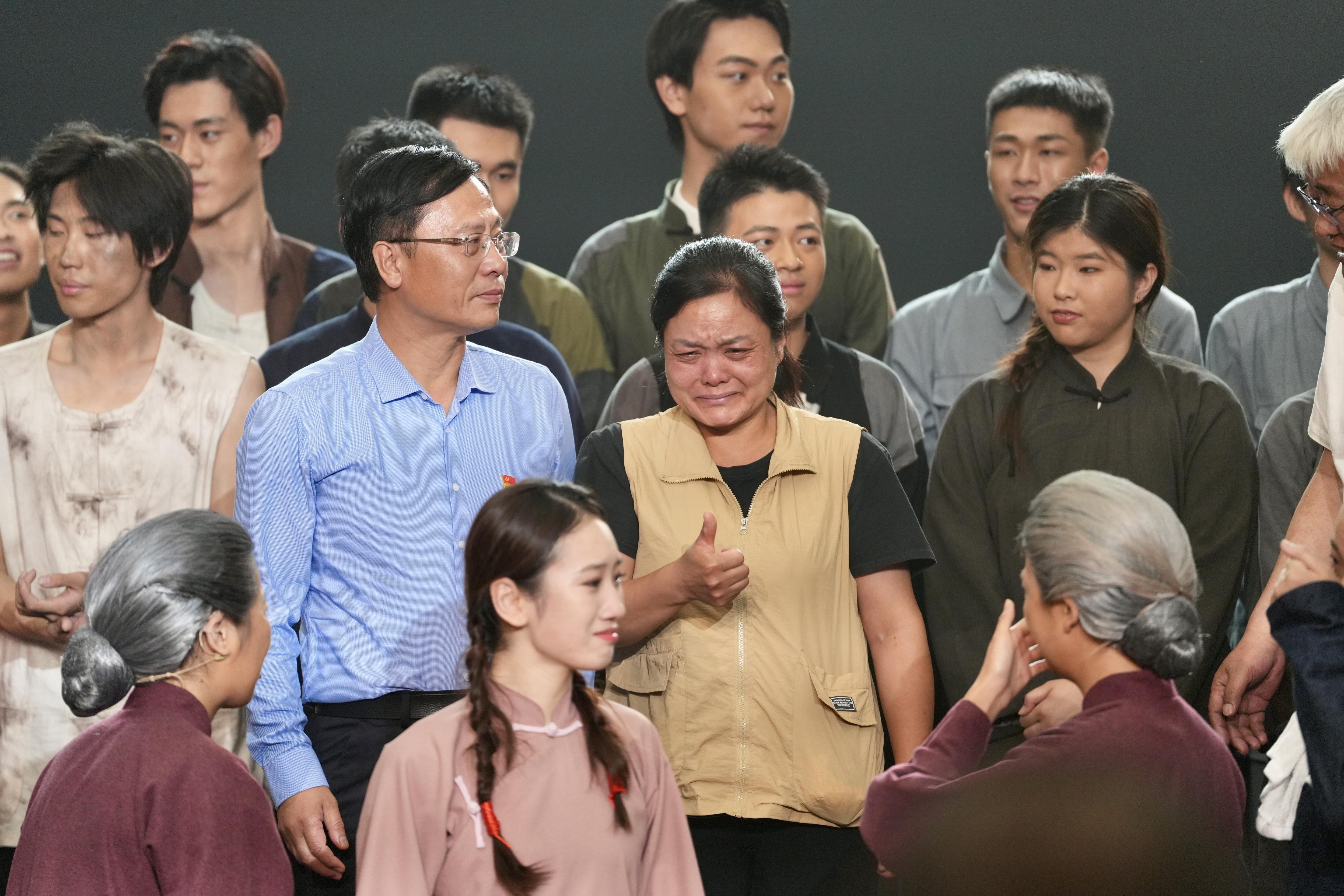 演出现场还请到了邓玉芬的后人前来观看,演出结束之后她热泪盈眶,向演员们竖起大拇指。